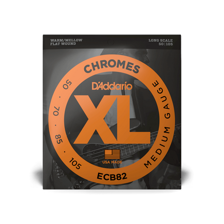 ECB82 is a medium gauge flat wound string set for long scale electric bass. XL Chromes are noted for their smooth feel and warm, mellow tone, essential to the sound and style of many jazz, blues, and rock players.