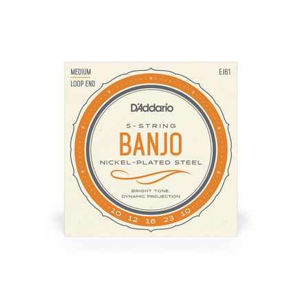 EJ61 is a medium gauge string set for 5-string banjo, utilizing high carbon, tin-plated steel wire with a nickel-plated steel wound string.
