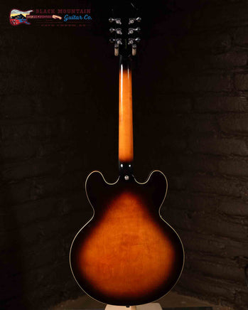 Based off of the Riviera crucial to Oasis’ earlier era giving an unique contrast to Gem Archer Sheraton. Period-correct white pickguard “pops” on dark burst.