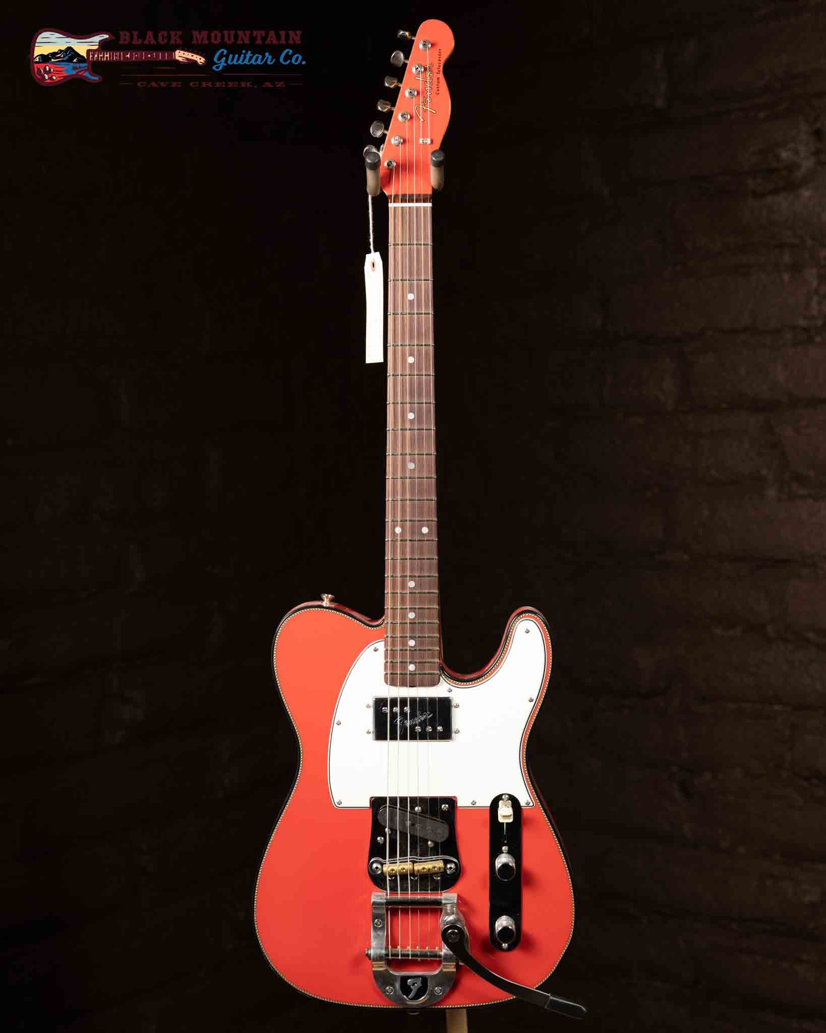 Other premium features include a quartersawn 2A flame maple neck with '60-style Oval "C" back-shape, matching painted headcap, flat-lam rosewood fingerboard, 9.5" radius, 21 narrow tall (6105) frets, Dual Stack HS Tele wiring, 3-way switch, 3-ply parchment pickguard, Bigsby® B5 Vibrato tailpiece with RSD J-Bridge, vintage-style tuning machines, bone nut, wing string tree, deluxe hardshell case, strap and certificate of authenticity.
