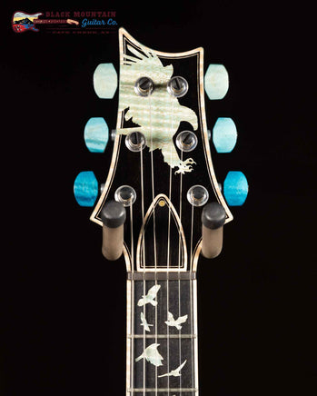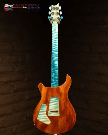 This is a beautiful, one of a kind PRS Private Stock Custom 24-08 in Dragons Breath Glacier Blue with a reverse birds of a feather inlay pattern.